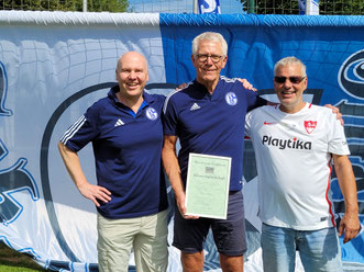 Mathias Schipper (ehemaliger Fußballspieler beim FC Schalke 04 und aktuell im Traditionsteam am Start) war bereits zum dritten Mal beim Sommerfest dabei. Er wurde Ehrenmitglied in unserem Fanclub und moderierte zusammen mit Gaga dieses Jahr unsere Veranstaltung 🎤